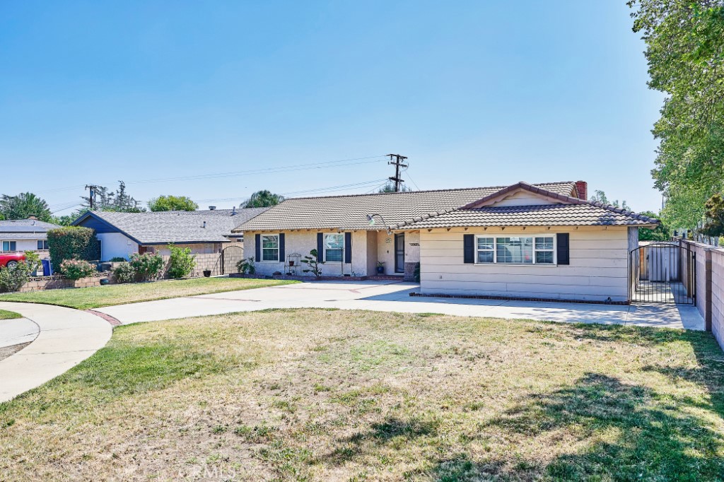 Updated Mid Century Ranch home on wonderful N. Ontario Cul-De-Sac! Welcome to the home you've been waiting for... This gorgeous property has been filled with charm and upgrades galore. From the gleaming wood laminate flooring, to the updated dual pane windows, open, flowing floor plan and light neutral colors, this property is a dream come true! The welcoming leaded glass entry door is just the beginning... leading to the fully remodeled country kitchen with an expanse of creamy paneled cabinetry with brushed nickel drawer pulls, stainless steel appliances, and granite counter tops fit for your inner gourmet. The adjoining oversized family dining space and large stone covered peninsula with pull up seating make cooking and dining with friends and family a breeze! Next stop, the beautiful family room with a warm brick fireplace at its center, flanked by plantation shutters, making all four California seasons feel cozy and relaxed. For even more fun, just a few steps away, is the massive bonus/game room, which has not even been included in the square footage! Pool room, work out room, home office, hobby room... whatever your heart desires, this perfect gathering place is ready for you! Privately tucked on the other side of the home are three spacious bedrooms and two remodeled baths, including the tranquil master bedroom with plantation shutters, double closets and an attached en-suite with relaxing glass enclosed shower and large vanity. The two additional bedrooms have ceiling lights/fans, custom window treatments and built in closet organizers. The hall bath is fit for a king with spa like double walk in shower and rain head, stone topped counters and storage space galore! Ready to entertain? Head to the block wall enclosed back yard, complete with ceiling fan cooled covered patio and bbq area, a separate deck for lounging and massive grassy area perfect for cart wheels and soccer games! The two car attached garage with side RV slab, tank-less water heater, copper piping, new 5 ton A/C and furnace, quiet, private end of cul-de-sac location, and walking distance to excellent Hawthorne Elementary School, shops and wonderful dining, make this an incredible place to call home!