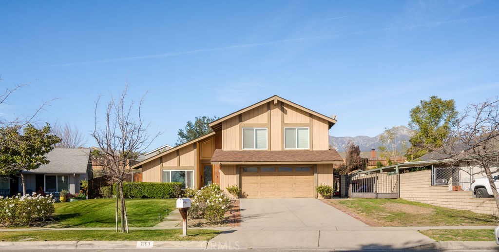 This intriguing home at 1163 Armando Street located between two prestigious country clubs in Upland is sure to please! From the sidewalk, you’ll notice the home’s unique pitched roof, rolling green grass and flourishing rose bushes. Once walking in, on the left is the formal living room with massive windows allowing the daylight to shine through. The beamed ceilings and exquisite architectural design inside of this house is a rare find. The living room leads to a dining area that flows into the kitchen. The kitchen has stainless steel appliances, granite countertops, and a tray ceiling contributing to the attention to detail in the design of this home. The entire first floor of this two-story home has recessed lighting throughout. There is also a powder room and laundry room on the first floor. Walking up the beautiful, wide staircase is where you can find all of the living quarters. The three guest bedrooms with large bright windows. The primary bedroom has lots of light, mirrored sliding closet doors and beamed ceilings. The en-suite bathroom has a granite dual-sink vanity with ample storage space and a modern glass-paned shower. There is also a guest bathroom with a full bathtub and shower as well as a granite vanity sink. In the backyard, large glass sliding doors lead to the partially covered and paved patio. This generously sized backyard also has lush green grass and ample space for all sorts of outdoor activities! Don’t miss your chance to own this beautiful home!