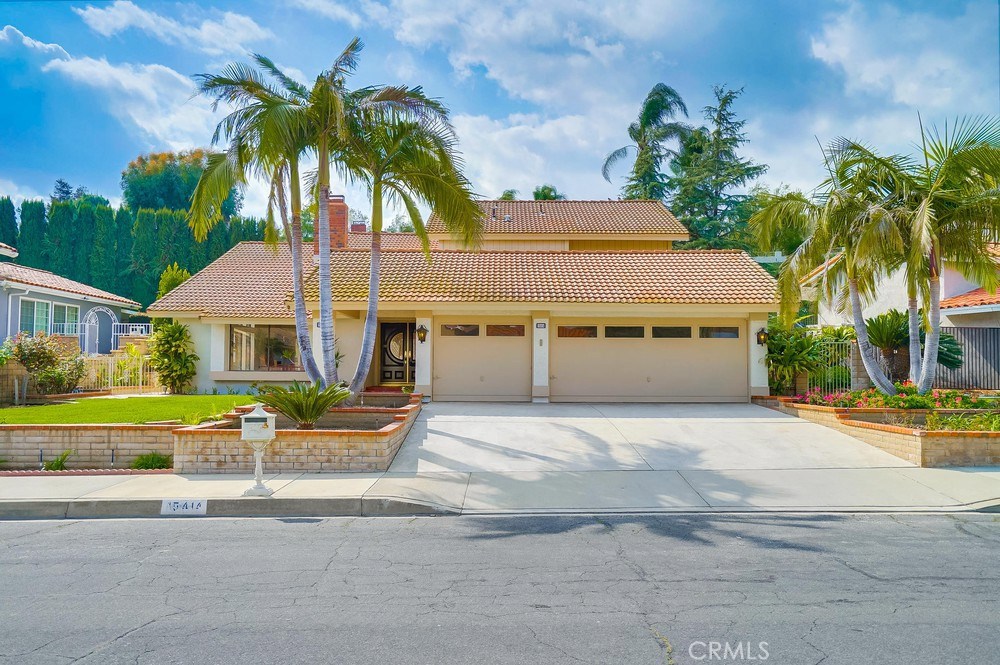 Stunning Chino Hills home, tucked away in a quiet community of rolling green fields and hillsides. The lushly landscaped yards, & elegant architecture are sure to impress. Rich dark wood double entry doors lead to dramatic two story staircase & formal living & dining rooms, w/ two sided fireplace, & inviting conversation seating area. A fresh, neutral paint pallet, designer carpeting & sophisticated laminate floors throughout, set the feel for this contemporary, well appointed property. The kitchen is fit for a chef, w/ an expanse of luxurious quartz counter tops & stainless steel appliances, as well as a breakfast bar that opens to the spacious family room w/ stylish fireplace, convenient wet bar & dual sliding doors opening to oversized covered patio that spans the length of the house. Downstairs bedroom, 3/4 bath & separate laundry room w. wall to wall storage, complete the 1st floor. The 2nd level has two bright bedrooms & a full bath, in addition to the master suite, w/ fireplace & relaxing balcony. The attached en suite has a grand double sink quartz vanity, two walls of mirrored closets, & large oval soaking tub w/ separate shower. The secluded back yard is perfect for quiet reflection or entertaining, w/ its sprawling lawns and slump stone planters, filled w/ fruit trees and mature landscaping. The oversized three car garage, brand new central heat & A/C system, whole house fan, 4 fireplaces & immaculate neighborhood, make this the perfect place to call home.