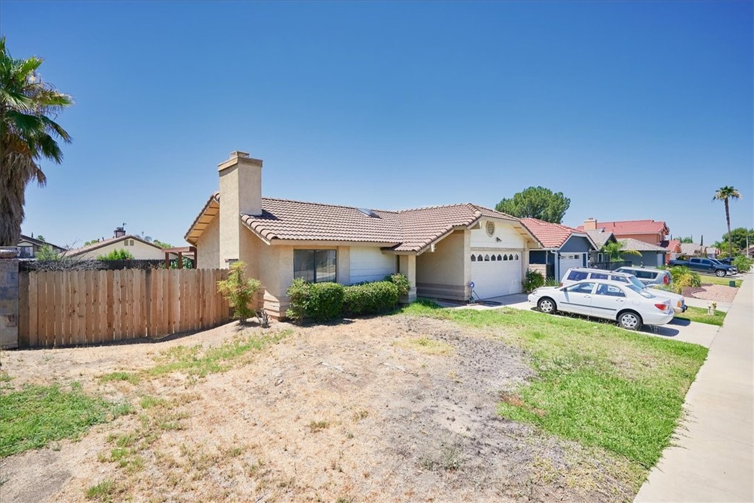 Lovely single level, 3br 2ba home! Double door entry, formal living room with warm brick fireplace, vaulted ceilings, neutral tile and paint as well as sky lights are just the beginning. The dining room complete with divided light french doors, leads to the bright kitchen with plenty of white tile counter tops and golden wood cabinetry. The large master suite has an attached bath with dual sink vanity and oval soaking tub with combo glass enclosed shower. The two additional bedrooms are bright and spacious, each with their own ceiling fans. The oversized back yard with wood and block fencing, as well as a large concrete slab with covered patio, tile roof and two car attached garage, make this a wonderful home to own!