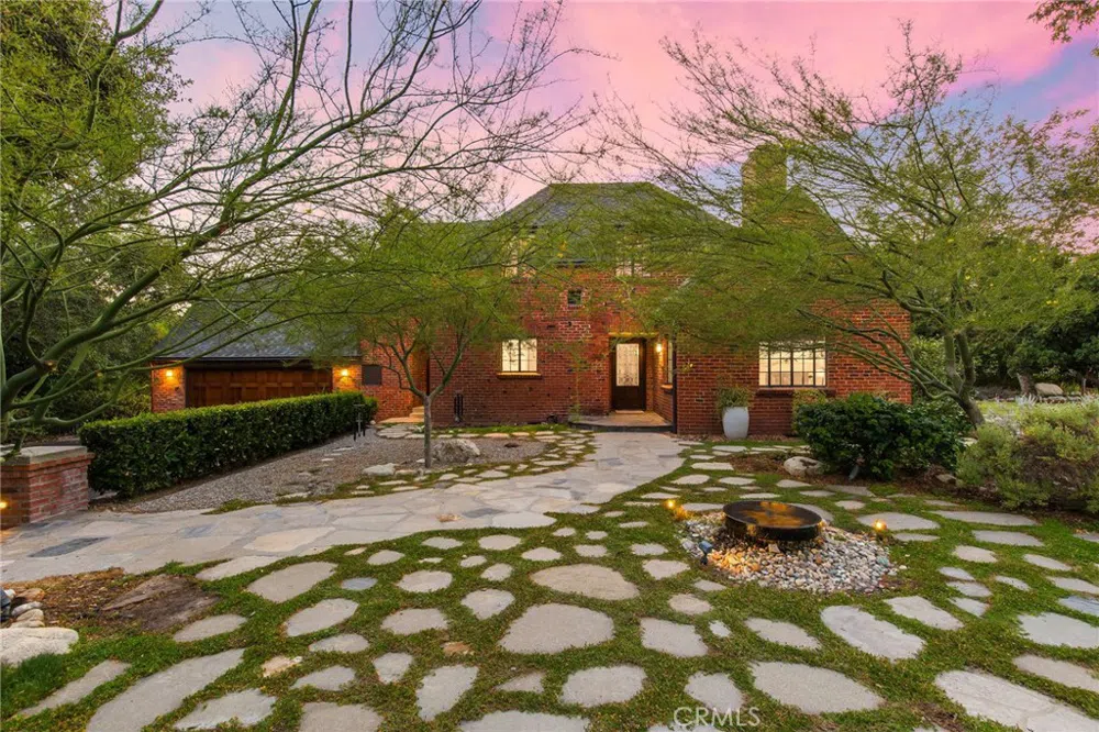 Masterfully designed by esteemed architect Peter Ficker with many recent major renovations and additions by renowned design-build firm, Hartman Baldwin, ensuring that every detail of this home exudes quality and craftsmanship. This exquisite residence, adorned in running bond and clinker brick detailing, epitomizes Old English charm and timeless elegance. Situated on an expansive corner lot spanning over 36,000 square feet, the property is a private sanctuary, enveloped by mature landscaping, privacy hedge, and a gated entrance. As you approach, the drive and walkway guides you through a captivating scene framed by two Palo Verde trees and a serene fountain, unveiling the architectural grandeur of the home. Upon entering, a versatile den or office adjacent to the entryway offers the perfect space for a guest room. The heart of the home is revealed as you step into the main living room, where high beamed ceilings and a handsome fireplace create an atmosphere of warmth and sophistication. An oversized window provides breathtaking views of one of the many enchanting gardens. This space seamlessly transitions into the sun parlor, the home’s most defining room, where three walls of floor-to-ceiling French doors and windows offer incredible garden vistas. At the center of the residence lies the exquisite kitchen and dining room. The kitchen boasts a timeless design with quality materials, and colorful tile counters and backsplash, evoking a sense of period charm. The dining room, with its French doors, opens to the main patio, blending indoor and outdoor living. At the south end of the property there is another front entrance as well as direct access to a fully finished garage, as well as a half bath and laundry room. A sunlit gallery style corridor, lined with French doors leading to a back patio, guides you to the primary suite. This expansive bedroom features a cozy sitting area and a spa-like ensuite bathroom, adorned with high-end fixtures, intricate tile work, and custom cabinetry. The abundant closet space is thoughtfully designed with built-in dressers, shelves, and numerous hanging spaces. The outdoors is a gardener’s delight, offering a plethora of garden beds, planters, meditation ring and meticulous landscaping. Multiple patios provide inviting areas for entertainment. Winding pathways lead you through the gardens, with occasional benches for moments of tranquility to listen to the birds or watch the butterflies.