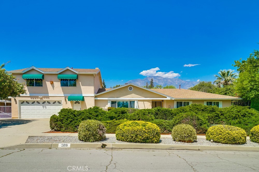 Beautiful single level N. Upland home on over 1/3 acre, with separate guest quarters! Arrive and be greeted by lush landscaping, formal circular drive, and double door entry. The interior has marble flooring, neutral carpeting, and formal living room with elegant stone fire place. Adjoining family and dining room are open and light with plenty of windows and parquet wood flooring. The chef’s kitchen has ample counter space and beautiful wood cabinetry. The spacious master bedroom has attached 3/4 bath for privacy. There are also two additional oversized bedrooms with plantation shutters and a full bath all on the ground level. Large utility/mud room leads to separate living quarters above garage, complete with 2 bedrooms and full bath, separate kitchen and living room with fireplace. The retreat-like backyard is lush and private with all block wall fencing, mature trees and foliage. The 2 car garage and additional carport, as well as highly desirable neighborhood and Upland schools, make this an ideal place to call home!