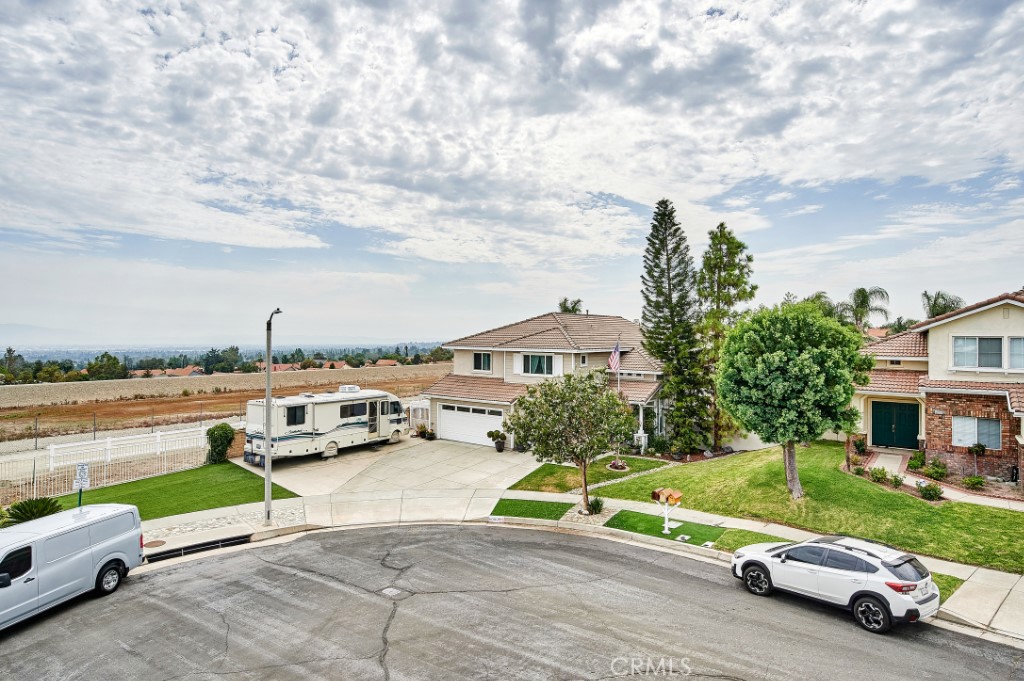 Beautifully Upgraded North Alta Loma City View property, at the base of quiet Cul De Sac! Fresh neutral exterior paint, three car garage, RV parking, lots of extra driveway parking space and panoramic city light and mountain views are just the beginning!!. The interior boasts two story cathedral ceilings, porcelain wood plank flooring tiles throughout home,and upgraded windows. Enter to the Formal living and dining rooms, and dramatic curved staircase. The massive great room has plenty of great features, including a warm brick fireplace, desk that turns into a murphy bed, room for a pool table and opens to the remodeled gourmet kitchen fit for a chef! Bar seating Prep island, granite surfaces, stainless appliances, and soft close cabinets makes entertaining a breeze. The second level has four spacious bedrooms, all with city light views! The oversized master is both private and relaxing with gorgeous city and mountain views, attached en suite, complete with soaking tub and separate glass enclosed shower, dual sink vanity and mirrored walk in wardrobe closet. The easy care yards showcase artificial turf, mature trees, slump stone block wall fencing, and wonderful aluma wood covered patio with ceiling fans. The storage shed adds convenience and the oversized RV parking is perfect for parking toys or your dream motor home. The indoor laundry room with sink, excellent Alta Loma schools and close proximity to shops and dining, make this the perfect place to call home!